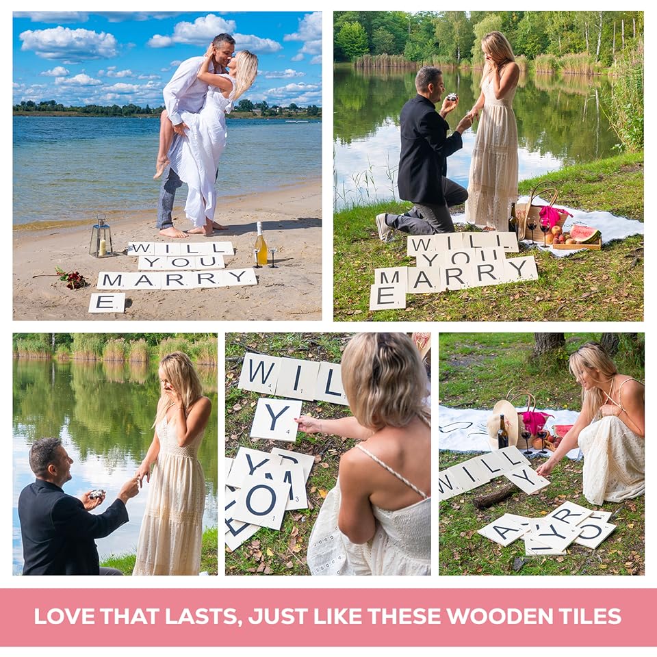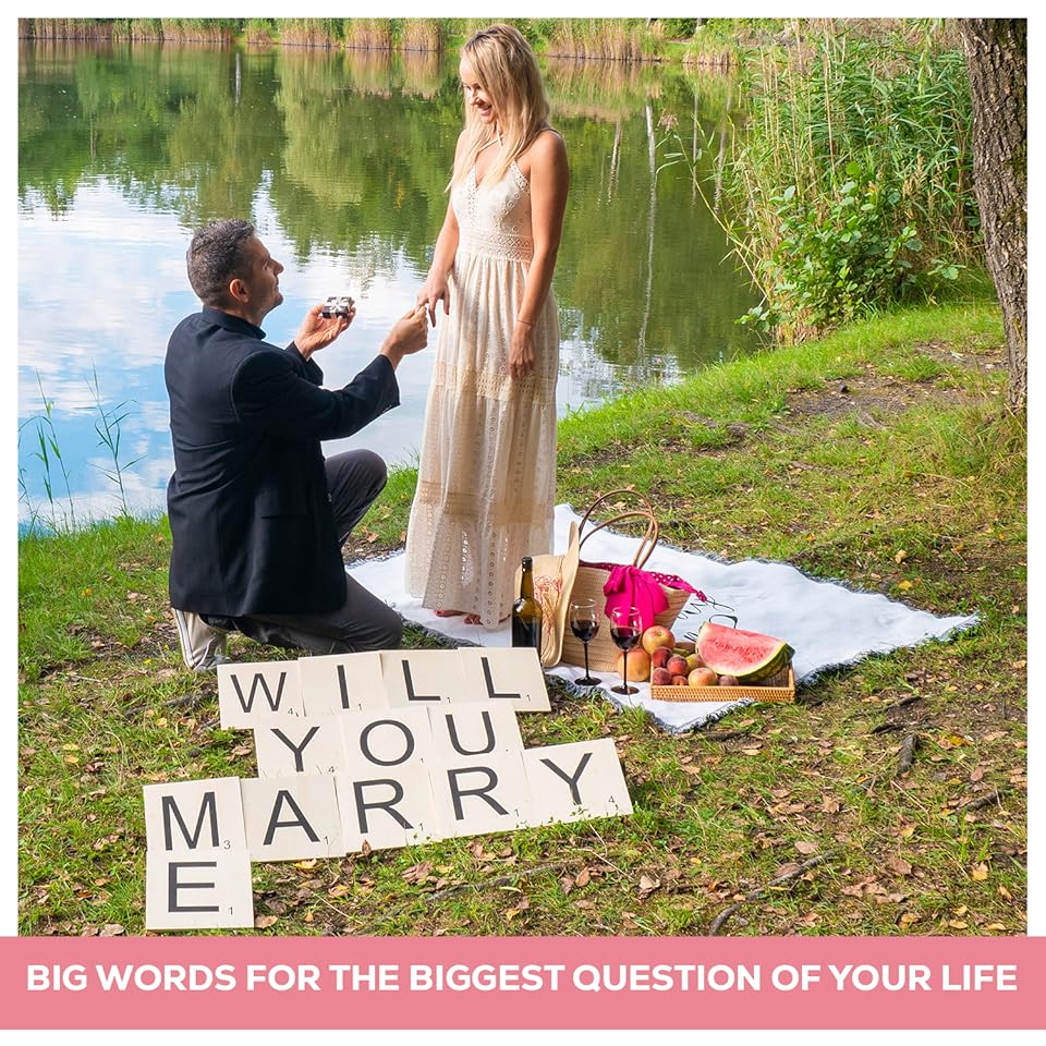 Will You Marry Me Sign Oversized Wood Tiles for Wedding Proposal Decorations- 13 Letters for Indoor and Outdoor Use